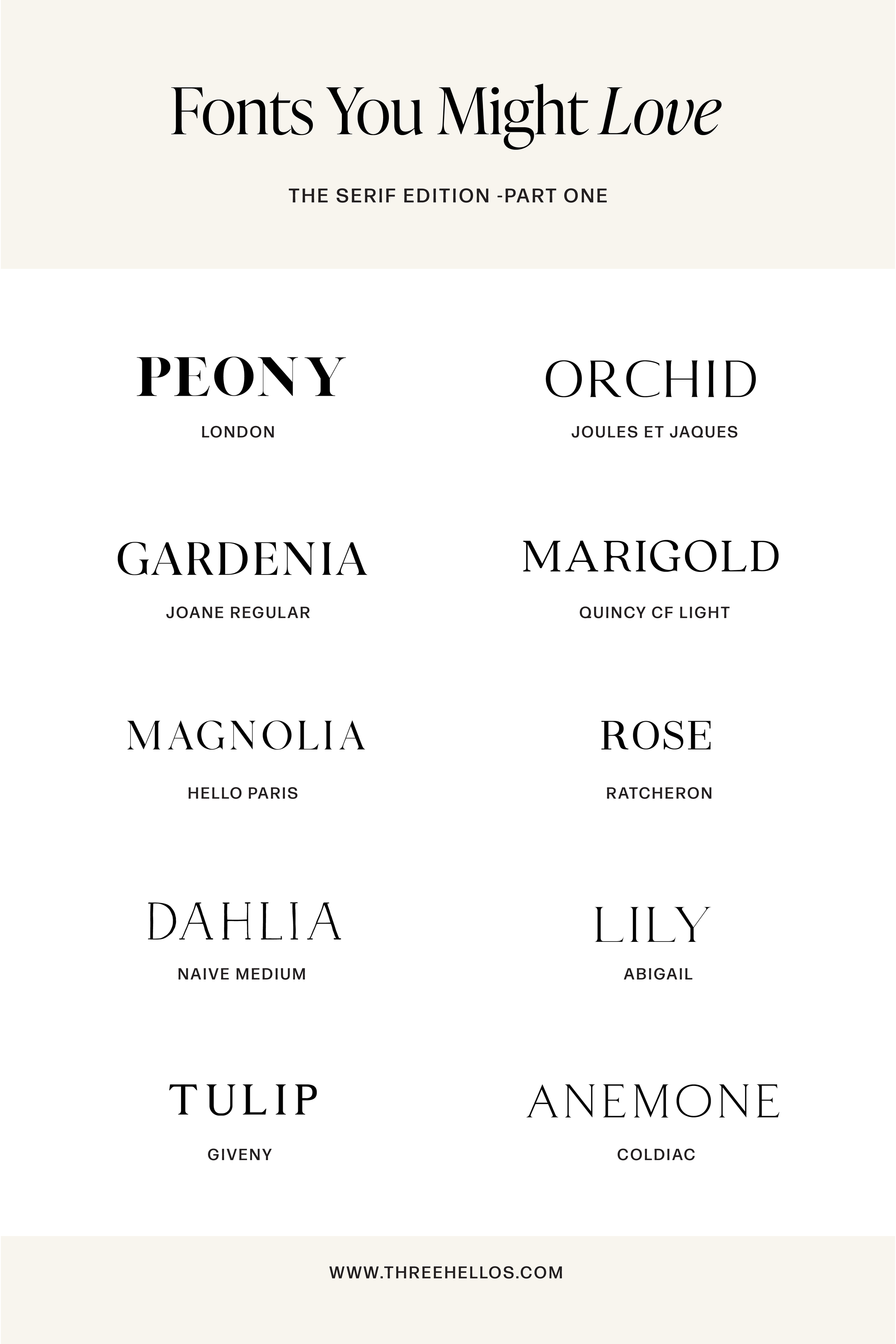 I’m guessing it is no secret that I’m a sucker for serif fonts. I love the upscale, sometimes historical feel that they can produce, especially for a brand. So I decided to compile a list of my favorites for you guys!
